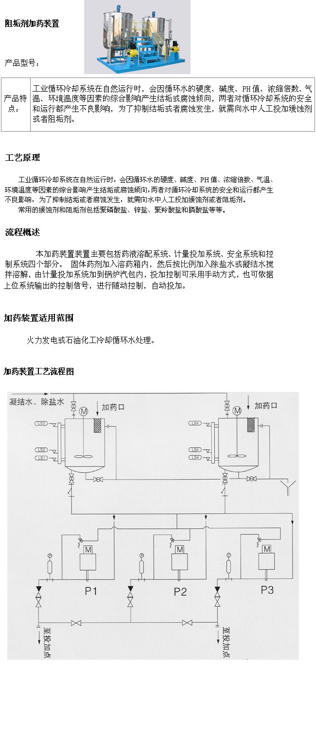 循環(huán)水加藥裝置技術(shù)特點: